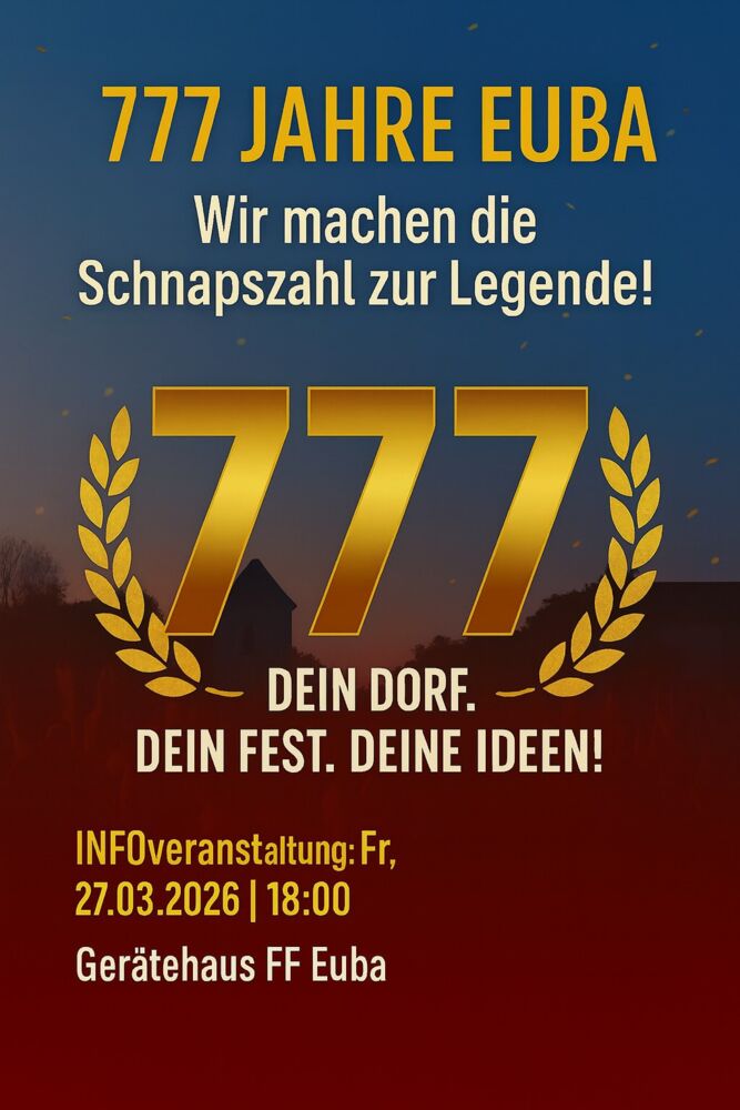 Der Ortschaftsrat, Vertreter der Eubaer Vereine und Eubaer Einwohner haben sich bereits mal paar Gedanken gemacht, wie man das große Jubiläum der 777-Jahrfeier gebührend begehen kann.
