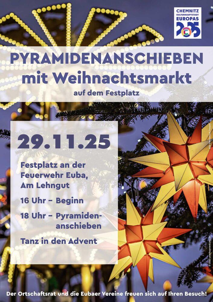 ... findet auf dem Festplartz in Euba das traditionelle Pyramidenanschieben statt.