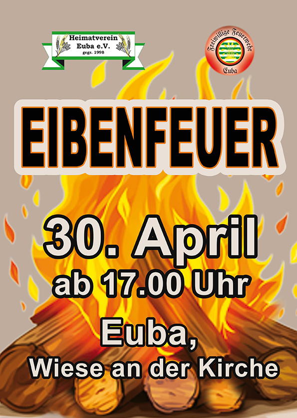 Traditionsgemäß wird am 30. April ab 17.00 Uhr das Eibenfeuer in Euba stattfinden. Angezündet wir ca. 20.00 Uhr.